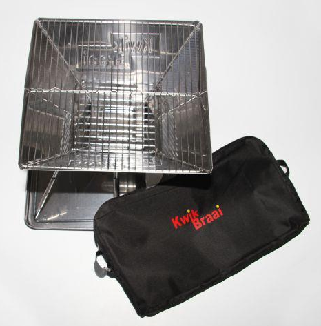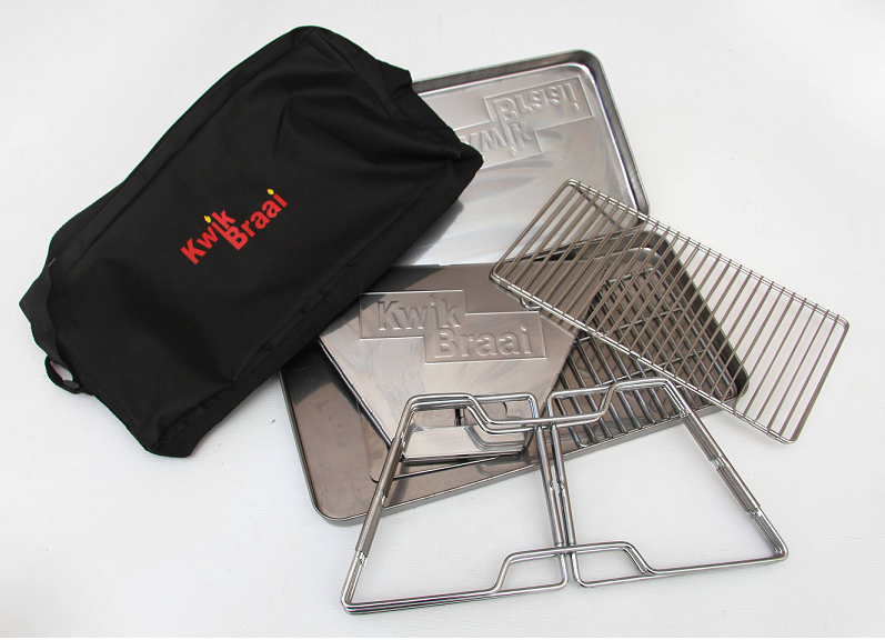 The Kwik Braai and King Braai are both light portable and durable. They are manufactured in the highest quality grade stainless steel. The Kwik Braai folds up into a neatly 30cm by 19cm carry case.Outdoor Braai: